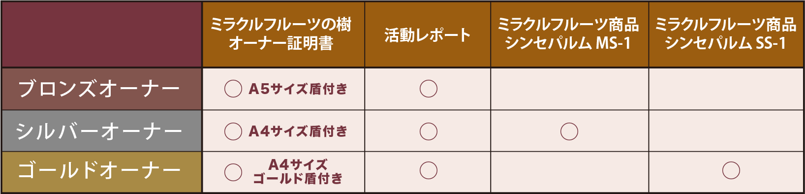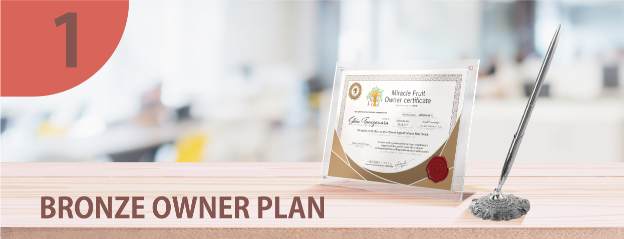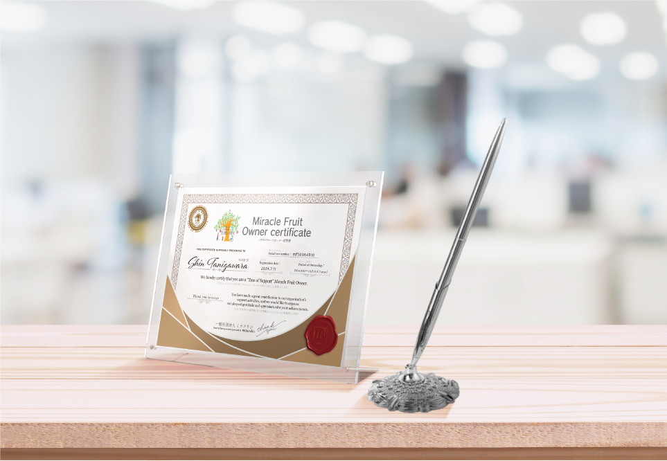 - ・ミラクルフルーツの樹オーナー証明書A5サイズ盾付き